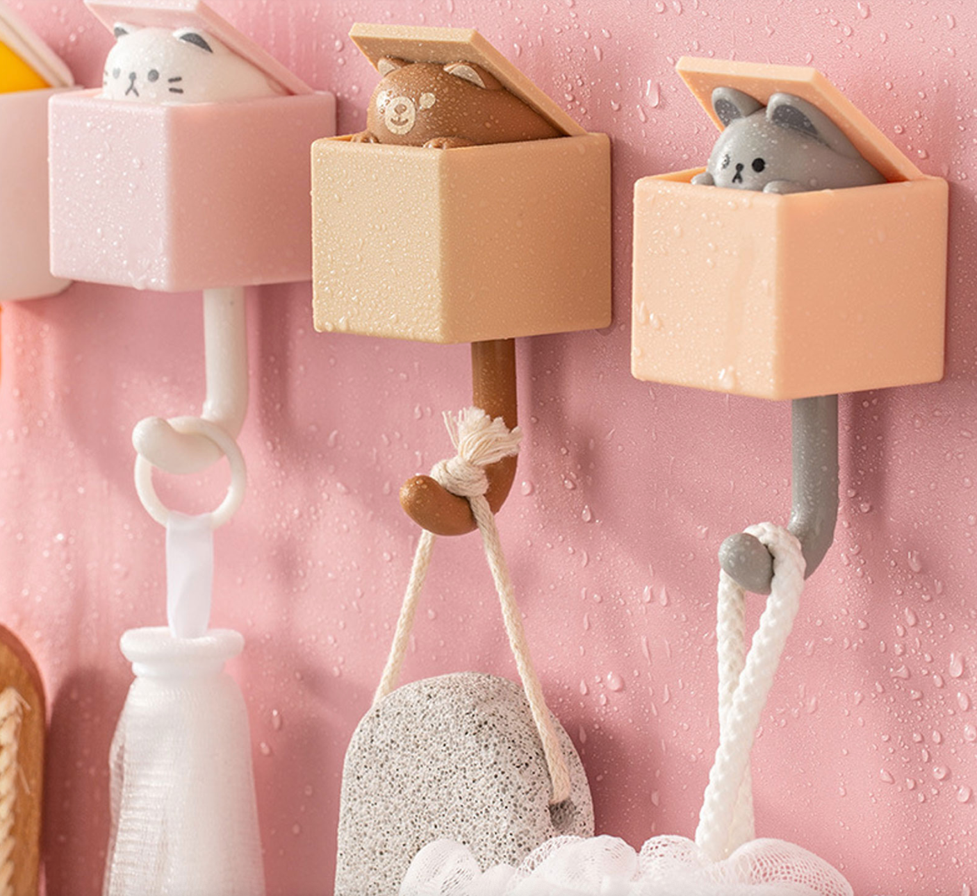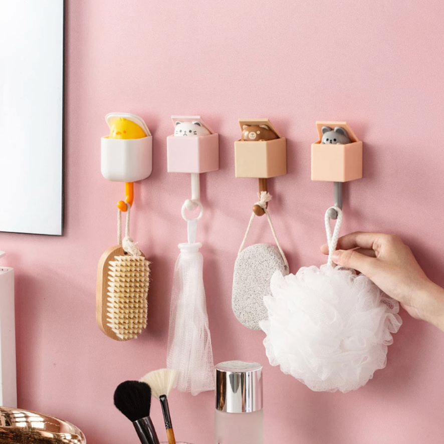 When you hang the item on the hook and pull it down, the cute animal’s head will stick out of the box, and when you don’t use it, the box will automatically close.