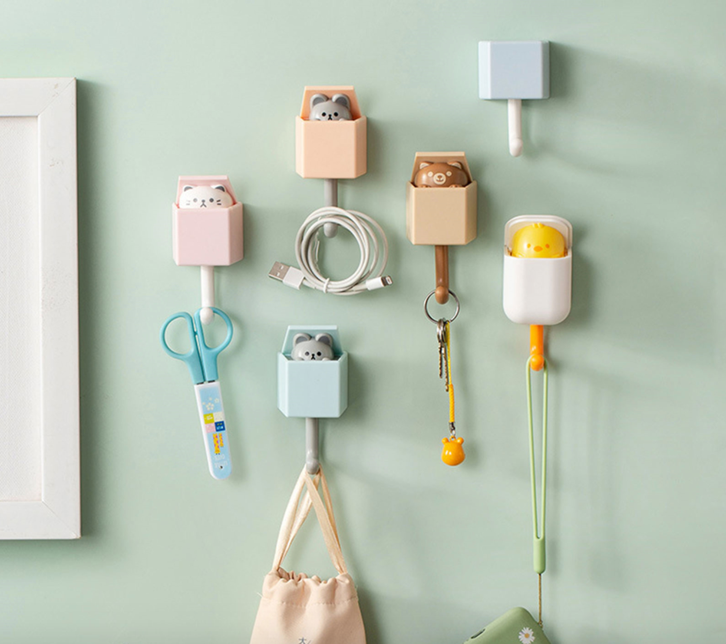 Self-adhesive, no trace after removal. Sturdy and stylish cartoon animal hangers. There is tape on the back.